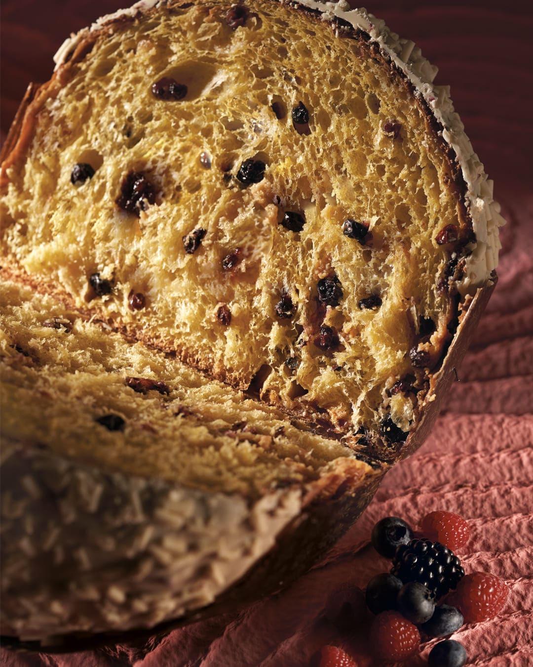 INGREDIENTI: farina (GLUTINE)*, frutti di bosco, burro (LATTE)*, zucchero, tuorlo d’uovo (UOVO)*, acqua*, lievito naturale (GLUTINE)*, cioccolato bianco (35% min.di cacao, puro burro di cacao, zucchero, latte in polvere (LATTE)*, vaniglia, lecitina di SOIA*), miele, purea d’arancio, sale, vaniglia in bacche, arancio grattugiato.