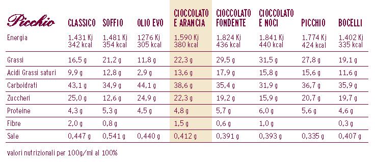 INGREDIENTI: farina* (Italia), burro* (Belgio), gocce cioccolato fondente 55%*, zucchero*, tuorlo d’uovo*, acqua, lievito naturale*, scorzette arancia candite*, miele*, purea d’arancia*, sale*, vaniglia in bacche*, arancia grattugiato*.